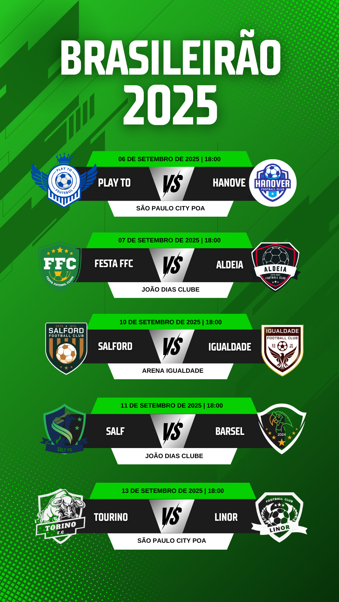 Liga Brasileira 2025 ClubePtsPJVITEDER Tor218701Bar198611Fes198611Play198611Ald188602Han168512Sal168512Igual158431Salf158503Linor158503